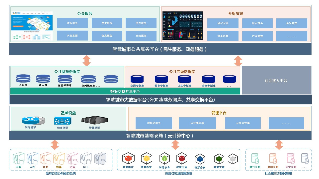 依托互聯(lián)網(wǎng)、云計算、大數(shù)據(jù)、物聯(lián)網(wǎng)、空間地理信息等現(xiàn)代科技和信息化手段,強化信息資源跨界融合運用,大力推進跨部門、跨系統(tǒng)、跨行業(yè)的數(shù)字資源利用,匯聚政務(wù)、企業(yè)、個人、感知等數(shù)據(jù)及資源,及時感測、收集、分析和運用城市及產(chǎn)業(yè)信息,解決交通擁堵、預(yù)警滯后、環(huán)境污染、資源分配失衡、人口膨脹、城市脆弱等一系列“城市病”;通過數(shù)據(jù)治理形成城市人口、法人、宏觀經(jīng)濟、地理空間等基礎(chǔ)數(shù)據(jù)庫和各行業(yè)專項數(shù)據(jù)庫,達到城市數(shù)據(jù)縱向清晰、橫向關(guān)聯(lián),深度分析與挖掘城市數(shù)據(jù),為民生應(yīng)用、企業(yè)發(fā)展、政府決策提供智慧支撐, 推進城市規(guī)劃、建設(shè)、運行、服務(wù)、綜合管理、應(yīng)急處置智能化。