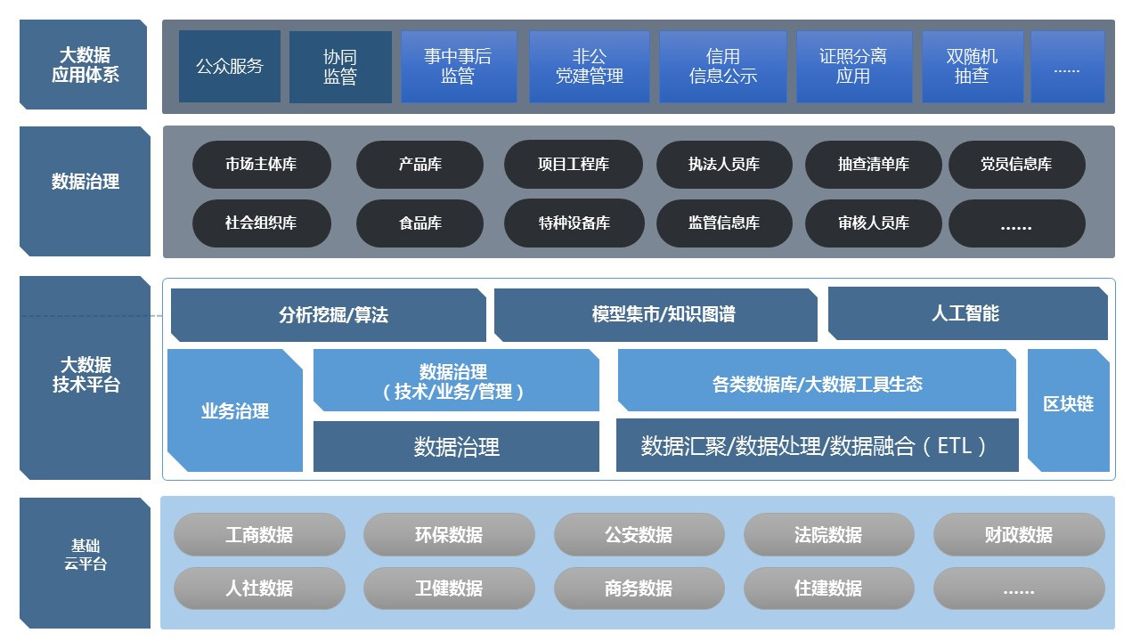 依托互聯(lián)網(wǎng),使用“互聯(lián)網(wǎng)+監(jiān)管+服務(wù)”新模式,解決信息孤島、信息不對稱、效率低下等問題,實現(xiàn)信息推送、信息歸集、信息共享、聯(lián)合監(jiān)管、聯(lián)合懲戒、監(jiān)管共管共治,建立事前告知制度,將監(jiān)管工作重心從事前審批轉(zhuǎn)向事中事后監(jiān)管,建立市場主體信用檔案,深入開展社會應(yīng)用,用于政府采購、招標投標、行政審批、政策扶持、資金扶持、資質(zhì)資格認定、評優(yōu)表彰、融資信貸等活動中。實現(xiàn)地區(qū)監(jiān)管手段和方式轉(zhuǎn)型升級,形成“寬進嚴管”監(jiān)管體系,實施信用監(jiān)管,構(gòu)建“一處違法、處處受限”信用約束機制,營造公平競爭市場環(huán)境,落實中央“放管服”(放得開、管得住、服務(wù)好)改革,有效促進大眾創(chuàng)業(yè)萬眾創(chuàng)新,激發(fā)市場活力;結(jié)合非公黨員大量分散在企業(yè),平臺已有企業(yè)資源等特點,搭載非公黨建管理服務(wù)平臺,實現(xiàn)非公黨組織、黨員管理及服務(wù),黨建工作常態(tài)化、數(shù)字化、規(guī)范化,提升非公企業(yè)黨組織覆蓋率。