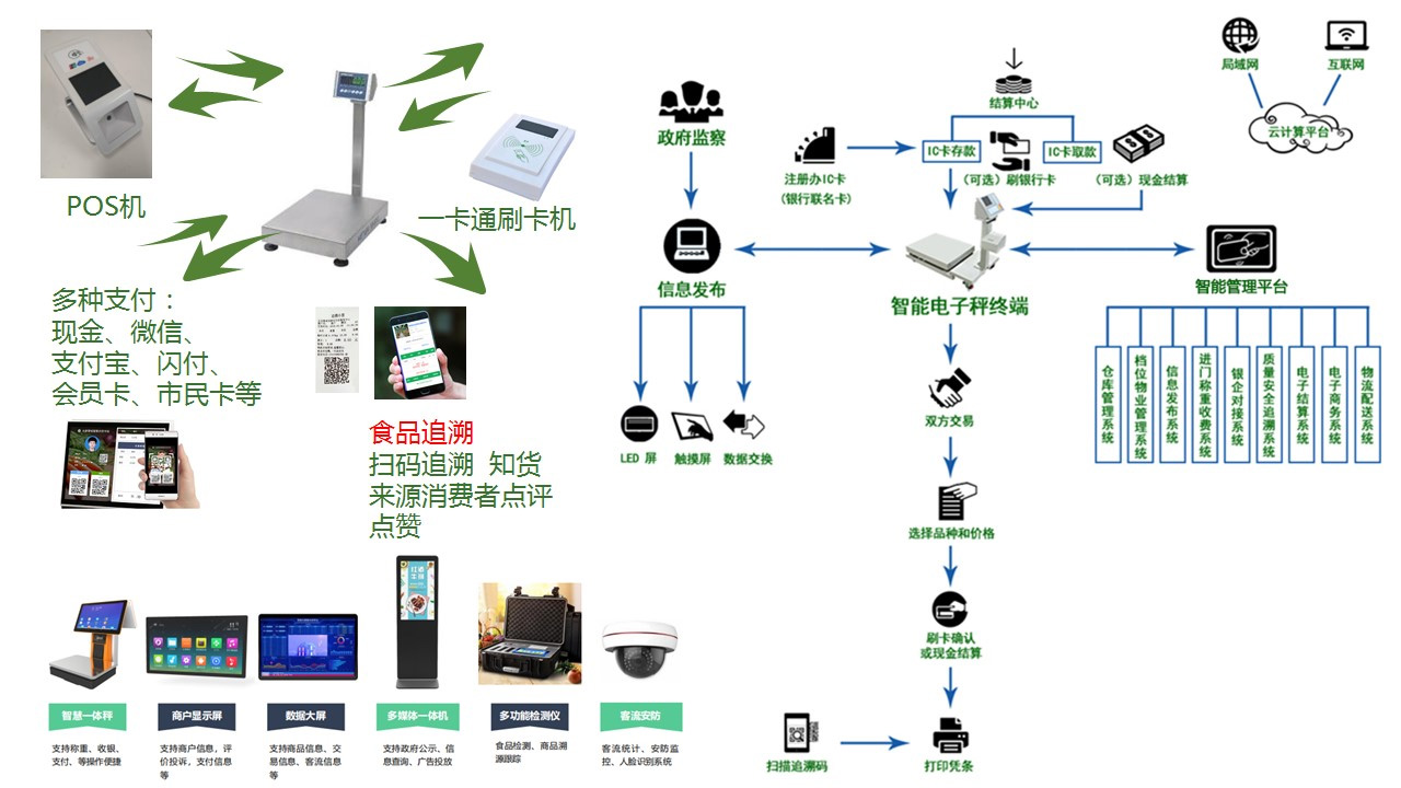 利用物聯(lián)網(wǎng)、云計算、大數(shù)據(jù)、人工智能、區(qū)塊鏈等信息技術(shù),為市場配備了智慧電子稱、商戶屏、攝像監(jiān)控等設(shè)備及智慧管理平臺,涵蓋“市場、商戶、物業(yè)、經(jīng)營、場務(wù)、數(shù)據(jù)、設(shè)備”各方面管理,實現(xiàn)市場可管控、可感知、可追溯、合同電子化、收費智能化、運營智慧化、數(shù)據(jù)一體化,極大降低了人工成本。利用AI技術(shù),實現(xiàn)水電、停車、人員、防疫等的智能管理,促進市場有序高效運行,同時大數(shù)據(jù)實時記錄公開透明,產(chǎn)品價格、農(nóng)殘檢測、產(chǎn)品溯源、商戶證照信息一目了然,交易可追溯,讓老百姓的"菜籃子”拎得更舒心、放心、開心。