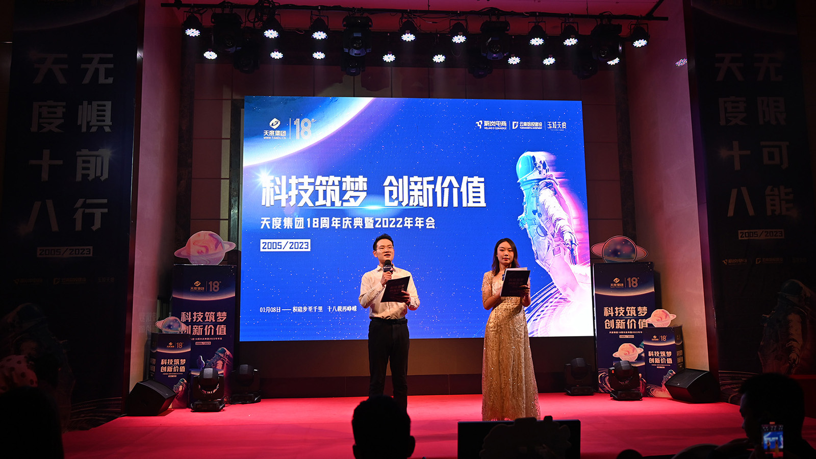 2023年1月8日,科技筑夢·創(chuàng)新價值—天度集團18周年慶典暨2022年年會在西南賓館圓滿落幕,集團及各公司同仁齊聚一堂,共慶天度集團發(fā)展成果,共享年會歡樂時光!