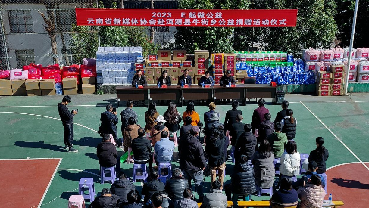 1月13日,云南省“2023 E起做公益”活動在大理州洱源縣啟動,當(dāng)天,云南省新媒體協(xié)會組織了9家互聯(lián)網(wǎng)企業(yè)前往洱源縣牛街鄉(xiāng)開展首場公益活動,向當(dāng)?shù)厝罕娋栀浟思毙璧碾娔X及生活物資1112件,解決了群眾的燃眉之急。群眾說,“這是我們收到的最好的新年禮物!”