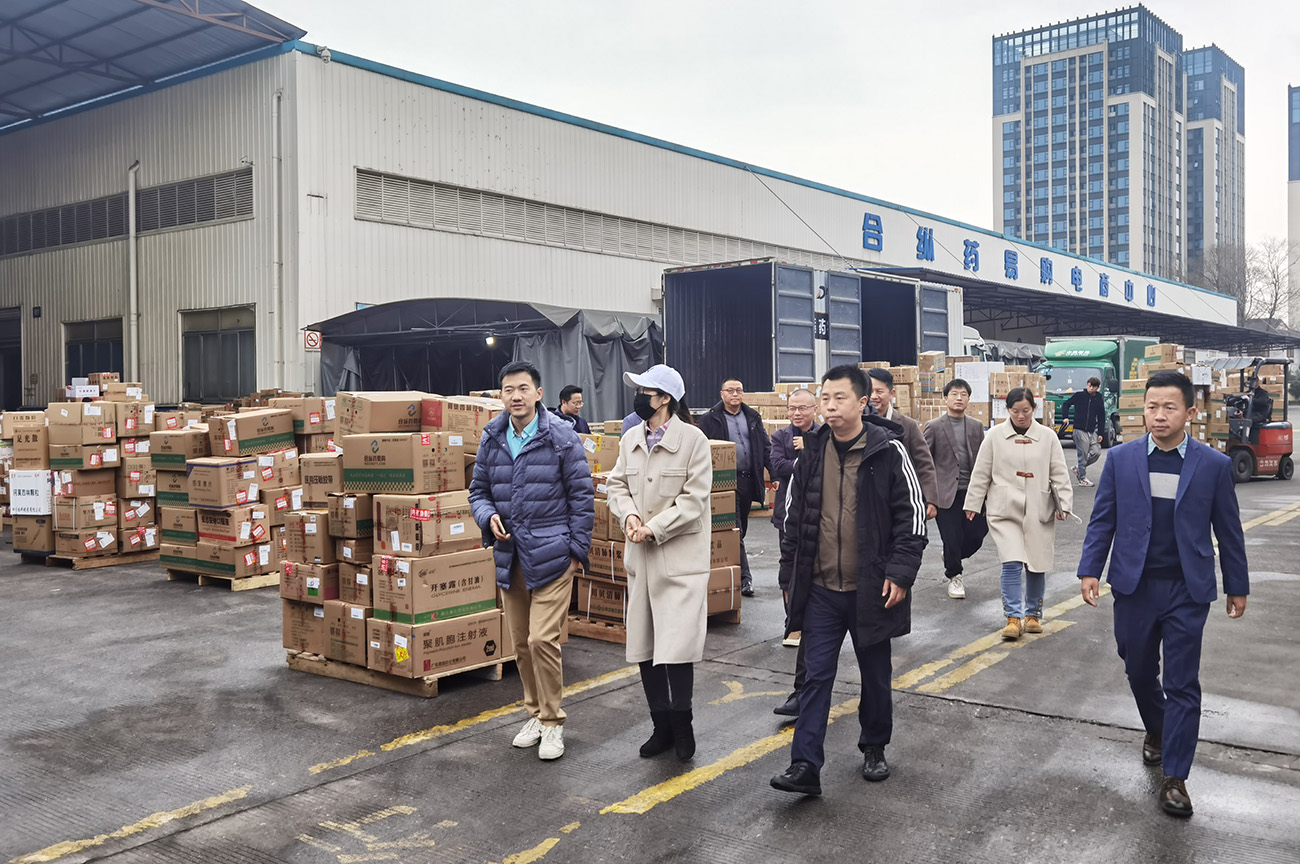 14日下午,考察團到達(dá)此次考察交流的第一站,四川合縱藥易購醫(yī)藥股份有限公司電商基地,受到了四川合縱藥易購醫(yī)藥股份有限公司董事、高級副總裁李宇欣帶領(lǐng)的相關(guān)管理團隊的熱情接待。四川合縱藥易購醫(yī)藥股份有限公司是中國首家醫(yī)藥產(chǎn)業(yè)互聯(lián)網(wǎng)上市企業(yè),是一家數(shù)智醫(yī)藥大健康生態(tài)型企業(yè)。業(yè)務(wù)涵蓋醫(yī)藥新零售、醫(yī)藥B2B電商、數(shù)字化賦能、醫(yī)藥批發(fā)、醫(yī)藥公共服務(wù)、醫(yī)藥供應(yīng)鏈、智能物流、C端矩陣、互聯(lián)網(wǎng)醫(yī)療、醫(yī)藥健康金融、大健康管理等眾多板塊。為全產(chǎn)業(yè)鏈合作企業(yè)提供優(yōu)質(zhì)產(chǎn)品、先進平臺、豐富資源、創(chuàng)新技術(shù)與完善服務(wù),助力生態(tài)伙伴加速增長與永續(xù)發(fā)展,共同構(gòu)建數(shù)智醫(yī)藥大健康產(chǎn)業(yè)鏈新生態(tài)。