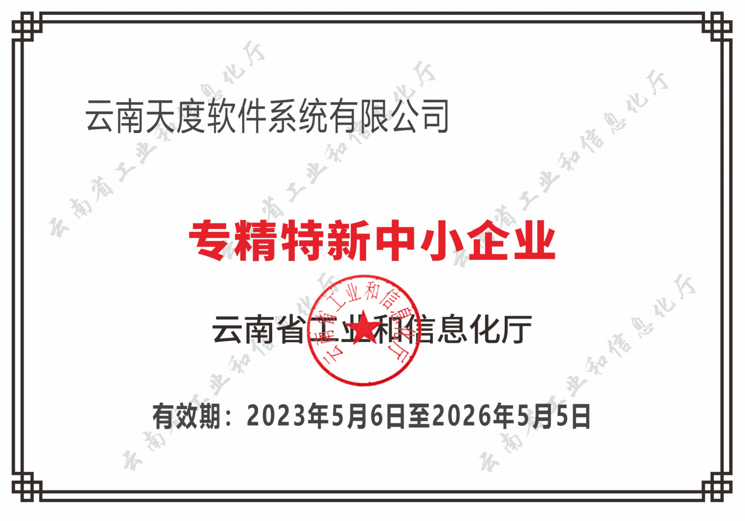 天度軟件入選云南省專精特新中小企業(yè)、創(chuàng)新型中小企業(yè)、國家科技型中小企業(yè)名單