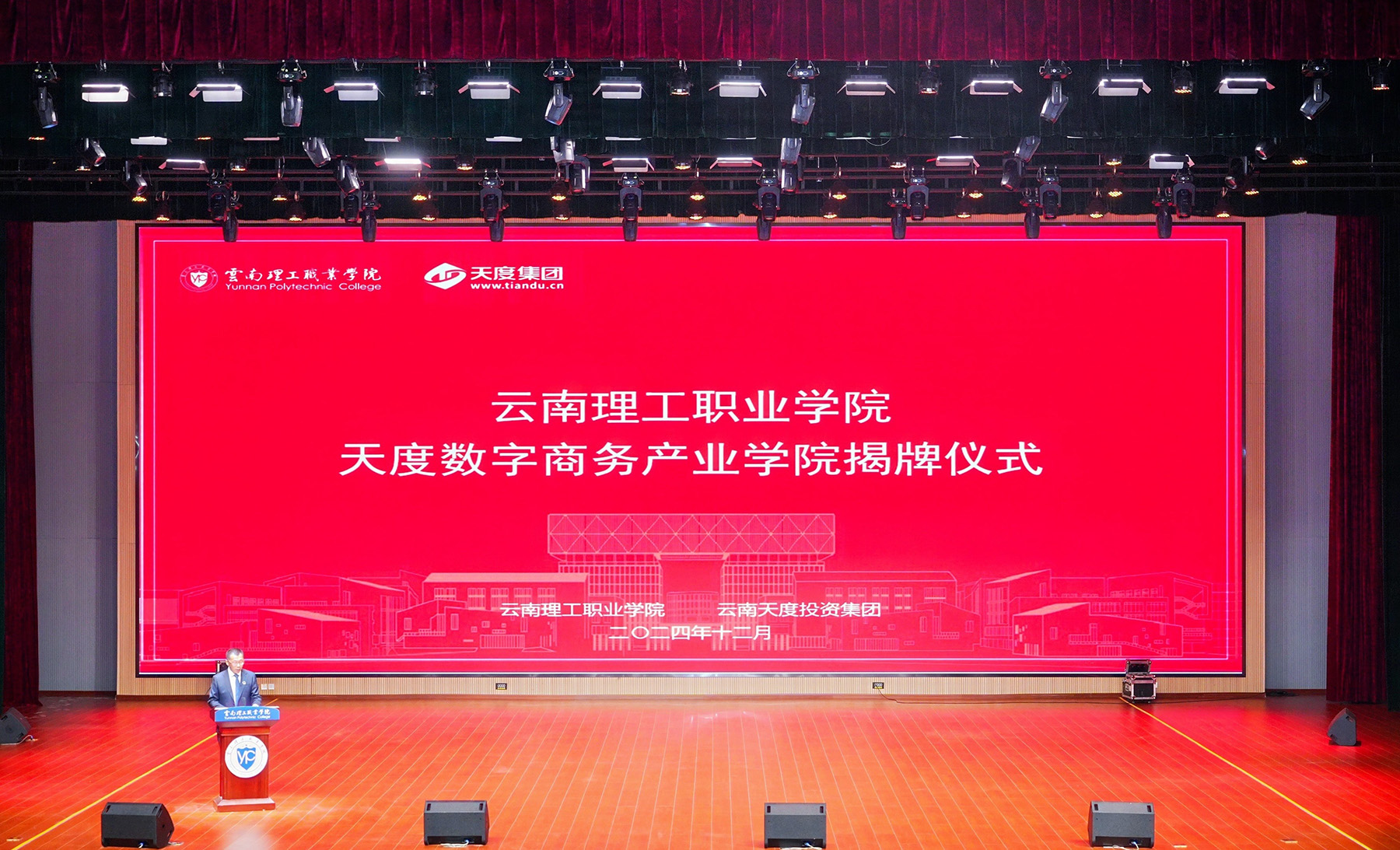 12月5日,云南理工職業(yè)學(xué)院天度數(shù)字商務(wù)產(chǎn)業(yè)學(xué)院簽約揭牌儀式在學(xué)生會堂隆重舉行。此次簽約標(biāo)志著云南理工職業(yè)學(xué)院與云南天度投資集團(tuán)強(qiáng)強(qiáng)聯(lián)手,共同開啟職業(yè)教育產(chǎn)教融合新篇章。