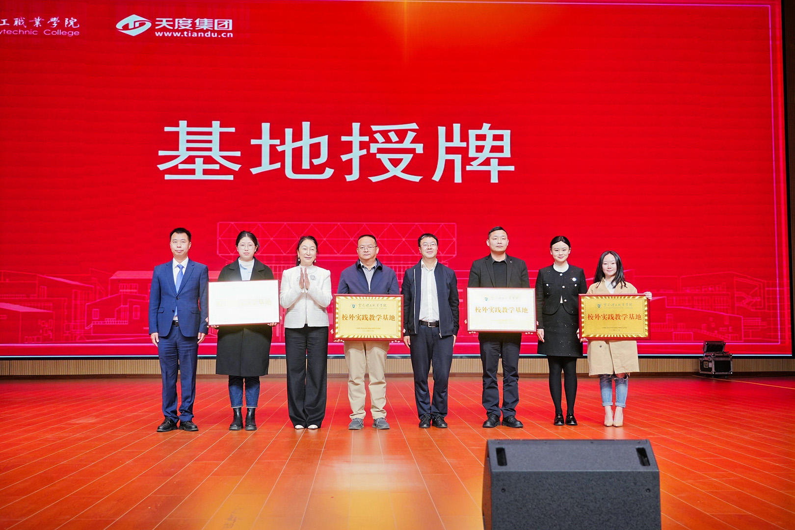 在全體參會人員的見證下,劉相校長與胡婷婷總經(jīng)理分別代表校企雙方簽署合作辦學(xué)協(xié)議。楊紅衛(wèi)董事長與鄭桂文董事長共同為“天度數(shù)字商務(wù)產(chǎn)業(yè)學(xué)院”揭牌,正式開啟產(chǎn)教融合協(xié)同育人新征程。