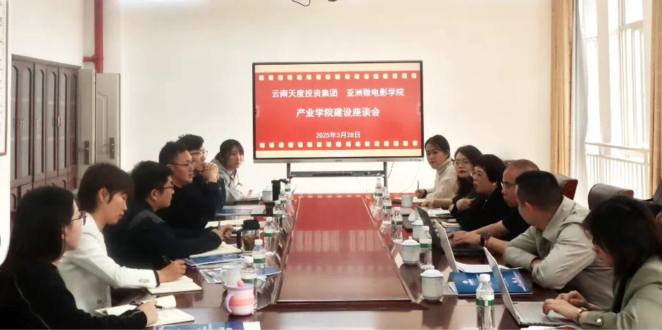 為深入貫徹落實(shí)國家產(chǎn)教融合戰(zhàn)略部署,破解邊疆影視人才供給與產(chǎn)業(yè)需求的結(jié)構(gòu)性矛盾,3月28日,云南天度投資集團(tuán)與亞洲微電影學(xué)院召開產(chǎn)業(yè)學(xué)院建設(shè)座談會。雙方圍繞“以影視為載體、以產(chǎn)業(yè)為紐帶、以邊疆為特色”主題,就構(gòu)建“四鏈融合”育人體系、打造產(chǎn)教協(xié)同創(chuàng)新生態(tài)達(dá)成戰(zhàn)略共識。云南天度投資集團(tuán)有限公司總經(jīng)理陳俊園、天度科技產(chǎn)業(yè)發(fā)展有限公司總經(jīng)理胡婷婷,學(xué)院黨總支書記劉紹彬、副院長夏麗娜及校企雙方代表10余人參加會議,學(xué)院黨總支副書記、主持工作副院長陳彥雄主持會議。