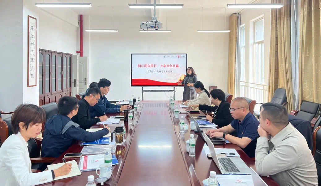 座談會上,與會人員共同觀看了云南天度投資集團(tuán)宣傳片,胡婷婷就“產(chǎn)業(yè)學(xué)院建設(shè)定位”“產(chǎn)業(yè)學(xué)院建設(shè)內(nèi)容”“預(yù)期成效”四個方面對產(chǎn)教融合實(shí)施方案進(jìn)行了詳細(xì)介紹,以“共建、共管、共享”的合作理念,聚焦云南及臨滄產(chǎn)業(yè)需求,在專業(yè)建設(shè)、課程開發(fā)、師資共建、就業(yè)服務(wù)等方面深化合作。隨后,與會人員就產(chǎn)業(yè)學(xué)院建設(shè)等相關(guān)情況進(jìn)行了深入交流研討,達(dá)成了一定共識。