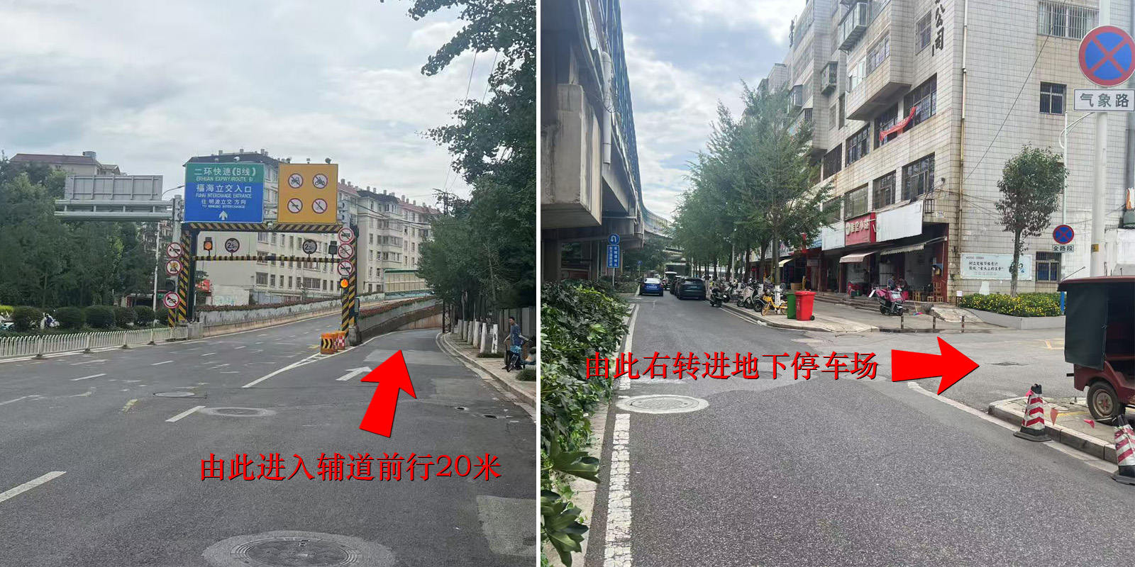 開車路線導航:請沿著氣象路上二環(huán)方向,按左上圖所示走輔道(不要上高架)前行20米,按右上圖所示右轉(zhuǎn)下地下停車場,進入停車場急左轉(zhuǎn)直行下負三樓,在A1地塊4棟(A座寫字樓)電梯口(天度集團專用停車位)停車,然后坐電梯至8樓。