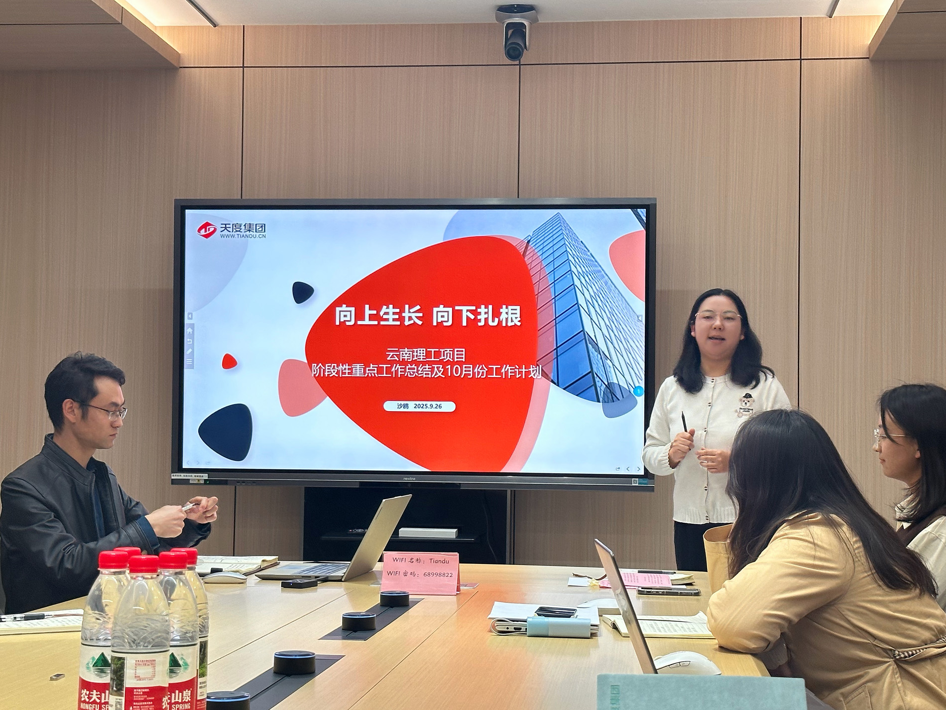 9月26日,云南天度科技產(chǎn)業(yè)發(fā)展有限公司階段總結(jié)暨工作部署會(huì)議在集團(tuán)總部順利召開。本次會(huì)議以“凝心聚力,共繪藍(lán)圖”為主題,系統(tǒng)梳理產(chǎn)教融合發(fā)展事業(yè)的前期工作成果,明確下一階段發(fā)展目標(biāo)與實(shí)施路徑。天度數(shù)字商務(wù)產(chǎn)業(yè)學(xué)院及高校校企合作項(xiàng)目的管理及教師團(tuán)隊(duì)齊聚一堂,集團(tuán)總經(jīng)理陳俊園出席會(huì)議并作重要工作安排部署。