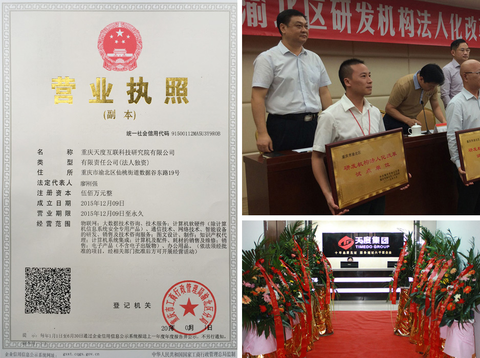 重慶天度互聯(lián)科技研究院(以下簡(jiǎn)稱(chēng)“天度研究院”)于2015年12月正式掛牌成立,這是重慶天度網(wǎng)絡(luò)信息技術(shù)有限公司作為重慶市渝北區(qū)研發(fā)機(jī)構(gòu)法人化試點(diǎn)單位的重要舉措。天度研究院作為集團(tuán)全資成立的獨(dú)立研發(fā)基地,主要以大數(shù)據(jù)、物聯(lián)網(wǎng)、智能硬件、網(wǎng)絡(luò)技術(shù)、電子商務(wù)的研發(fā)和研究為主,并將成立龐大的技術(shù)研發(fā)和產(chǎn)業(yè)研究團(tuán)隊(duì),為集團(tuán)的發(fā)展提供重要技術(shù)支撐。